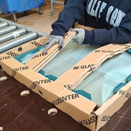 Transport claims have decreased significantly since we installed this new packaging system,” explains Thomas Heyman (Packaging Engineer). “Together with the supplier, we designed a specific box for every Glassinter reference we stock. These designs account for the unique shape and curve of each window. The glass stays suspended safely inside, and with enough buffer to prevent any breakage.”